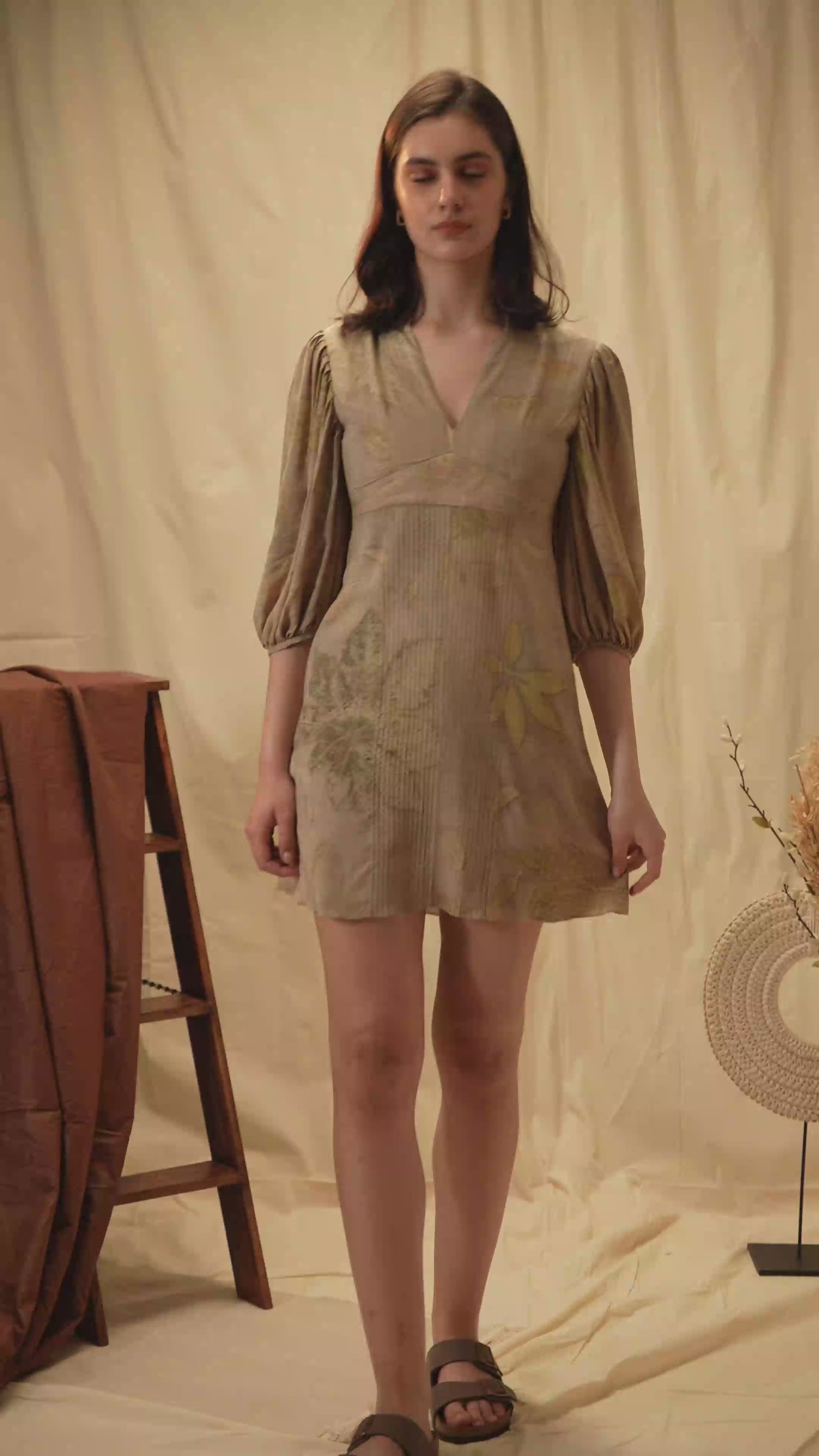 delicate pin tucks. Crafted from banana cellulose fabric with earthy botanical prints.