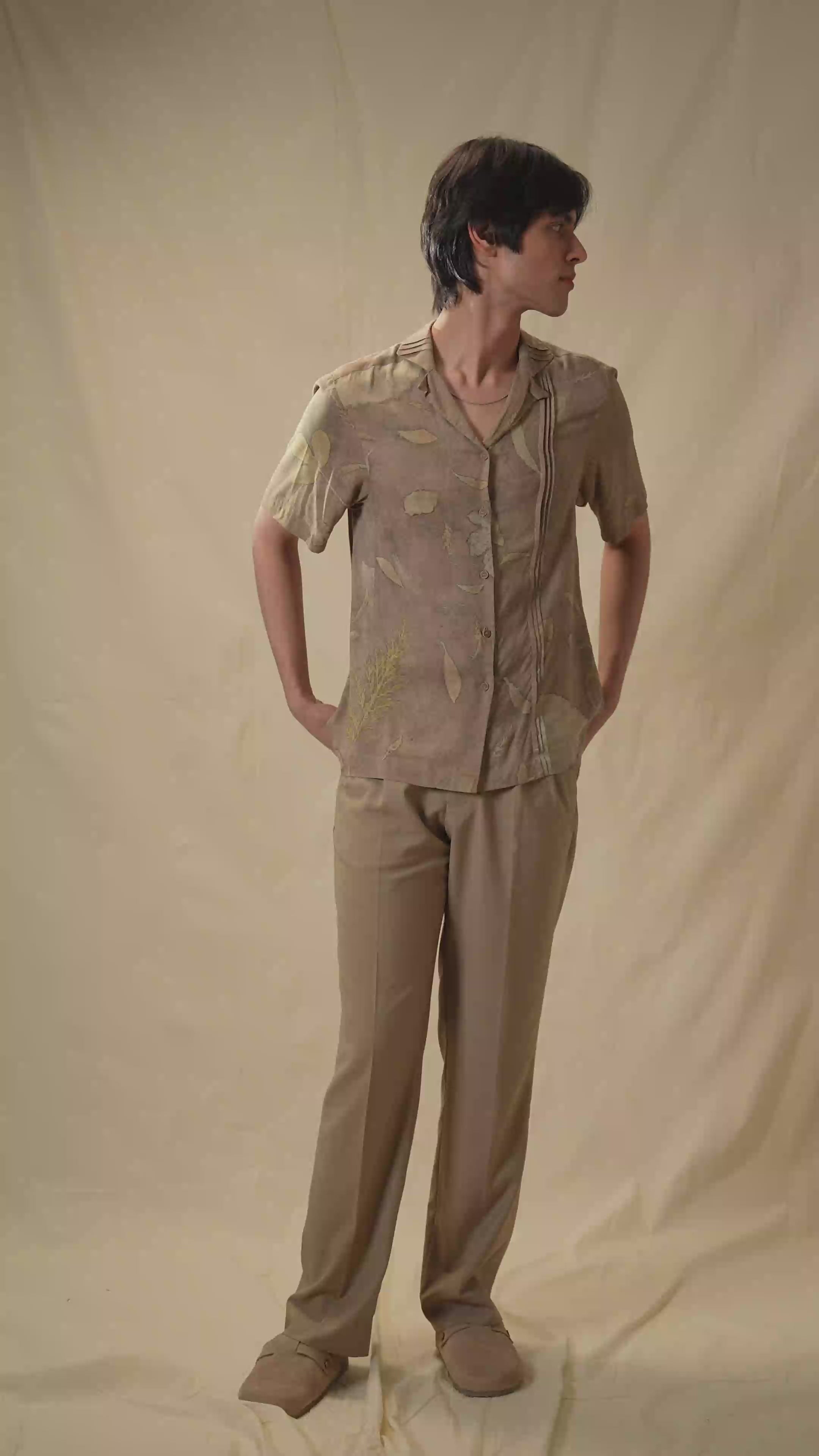 Shop the Welch Button-Down Shirt from Thvani Earth Craft. An earthy brown eco-dyed shirt made from sustainable banana fiber fabric, ideal for day-to-night style.